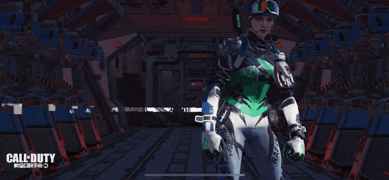 霄羽-雪凛迎风身穿蓝绿色特质紧身衣,头戴滑雪护目镜,并装备单兵通讯系统,以便随时与队伍取得联系。