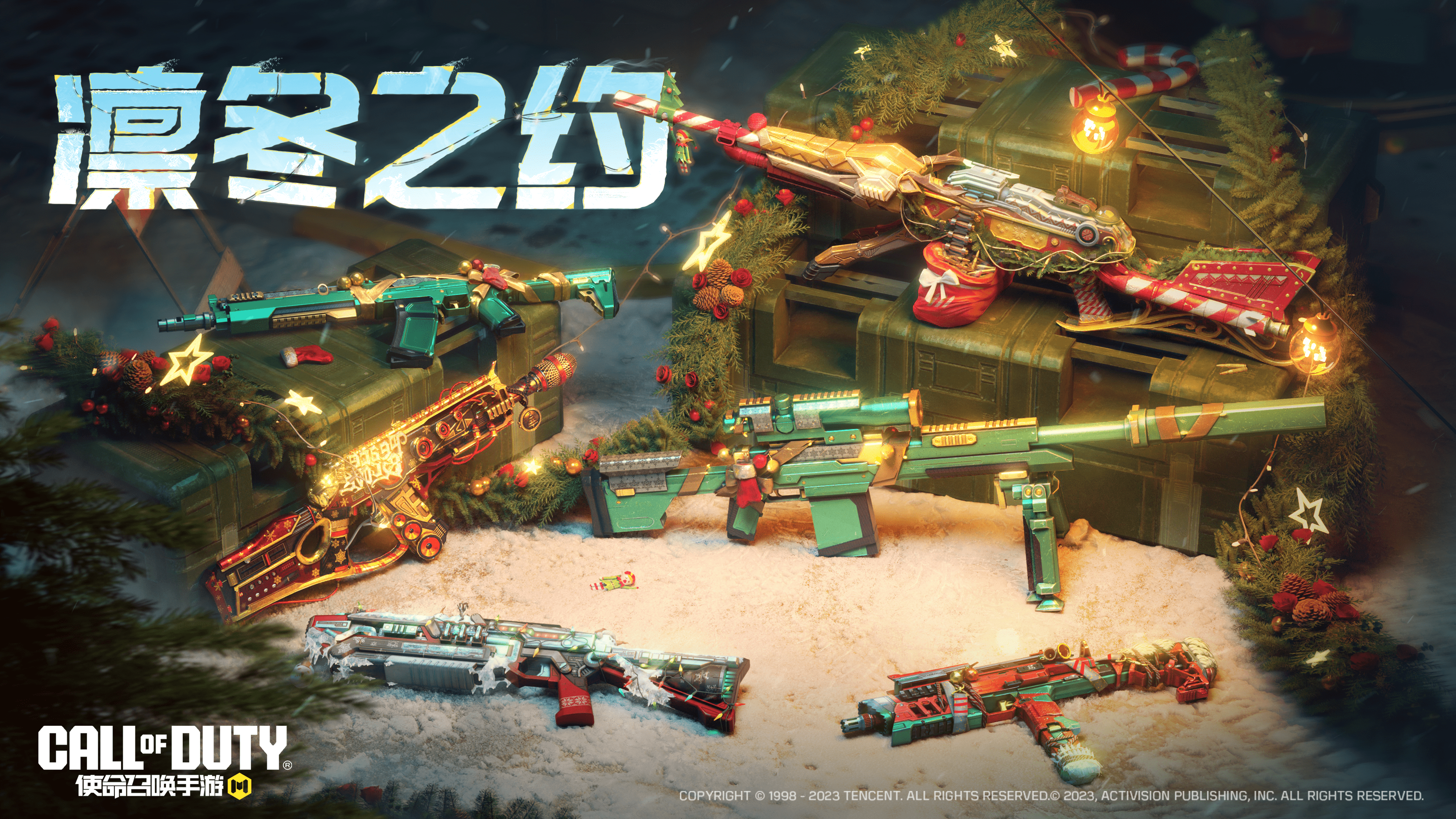 DLQ33-炫彩冬日以绿色为主色调打造的枪身,缠绕着夺目的五彩灯带,带着惊喜出现在眼前,为战士们准备了一场华丽的盛宴。